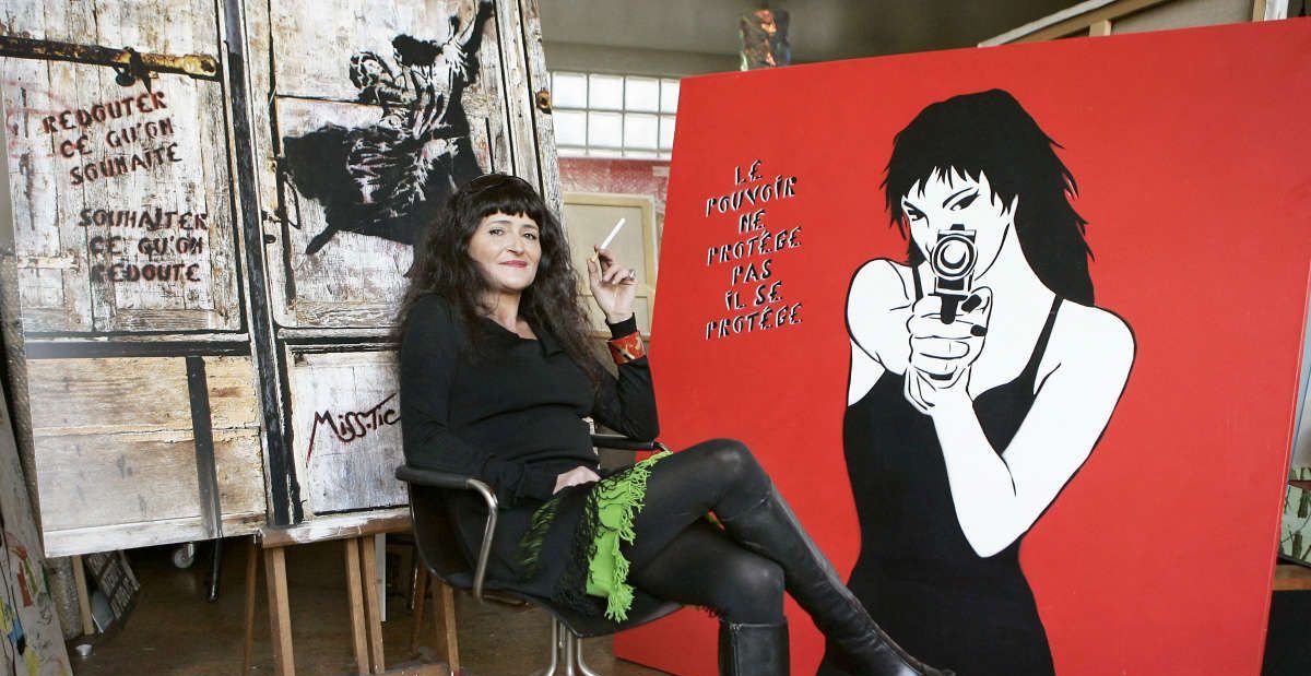 Miss. Tic c’est d’abord une signature furtive qui apparait sur les murs de Paris, au creux des années 80’. Une signature à la force de pochoirs et de bombes aérosols sortis de ses bagages au retour d’un long séjour en Californie, où, de Los Angeles à San Francisco, elle participe aux excès des milieux underground.