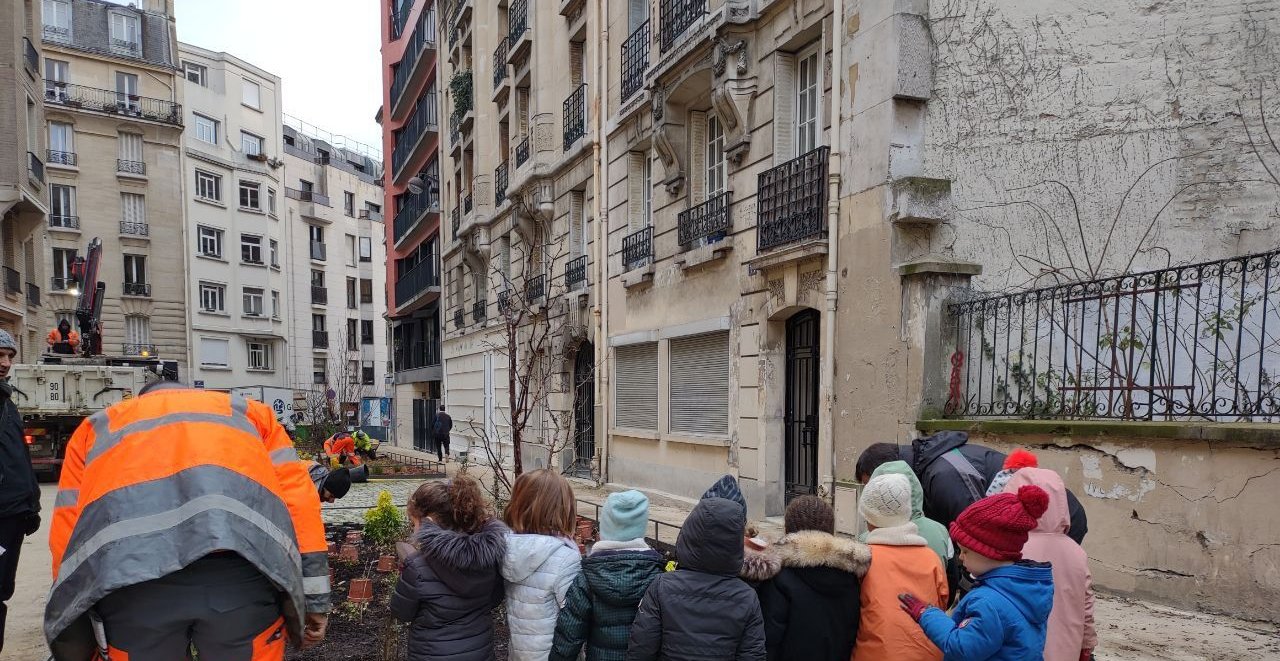 Après plusieurs semaines de travaux, le parvis de l’école élémentaire et la place Emile Landrin sont désormais élargis, piétonnisés et végétalisés. C’est le résultat d’un projet mené par la Ville de Paris et la Mairie du 20e pour permettre aux enfants de profiter d’un nouvel espace de rencontre sans crainte des dangers de la circulation routière. Les travaux ont aussi été l’occasion de planter des arbres, des plantes basses et de changer la couleur du revêtement pour contribuer à rafraichir la rue. Sous l’effet du dérèglement climatique, il est en effet nécessaire de multiplier ces espaces dans Paris pour permettre d’affronter les pics de chaleur qui se feront malheureusement de plus en plus fréquents dans les prochaines décennies. Après la rue Pierre Foncin, dans le quartier Fougères, la rue de la Cour des Noues devient la 2eme rue aux enfants du 20e arrondissement. Et de nouveaux projets sont d’ores et déjà à l’étude pour les rues Bretonneau, rue des Tourelles, rue du Surmelin et la rue Le Vau.